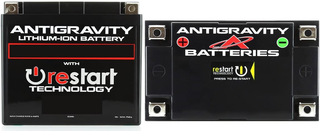 The new ATX30-RS is an extremely lightweight and high-power Lithium-Ion replacement battery for the heavy lead/acid YTX30 or YIX30L battery found in many Motorcycles and Powersport Vehicles. The ATX30-RS offers the first FULL Battery Management System (BMS) found on a Powersport Battery and includes low-voltage cut-off, over discharge, over-charge, and thermal protections with real time lithium-ion cell balancing. BEST USES: oFor replacement of all OEM Lead/Acid Batteries of same size. oExcellent for every day use in bikes up to 2500cc. oGreat for extra large, high-performance V-Twin motors. oExcellent for Harley Davidson Touring Bikes and other large Touring bikes that use the YTX30 size batteries. *Must be using ring style terminals as this battery does not have flush mount connections. oExcellent for use in Performance and Race Cars of all types including large V-8 Racing Motors up to 800 Horsepower. oNot for use with Personal Water Craft (PWC). oNot for deep cycle application. Meant for starting applications only. The NEW Antigravity ATX30-RS is a hi-power lightweight Lithium-Ion battery, built with our groundbreaking RESTART Technology (built-in jump-starting) so you won’t ever get stranded with a dead battery again! Directly replace the YTX30 OEM Lead/Acid Battery, as well as some YIX and GYZ models. YTX30 case size: 6.5 x 5 x 6.89 inches (LxWxH) 880 Cranking Amps 30 Amp Hours (Pb Eq) 5.75 lbs