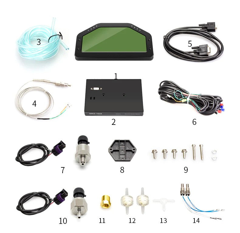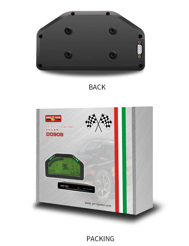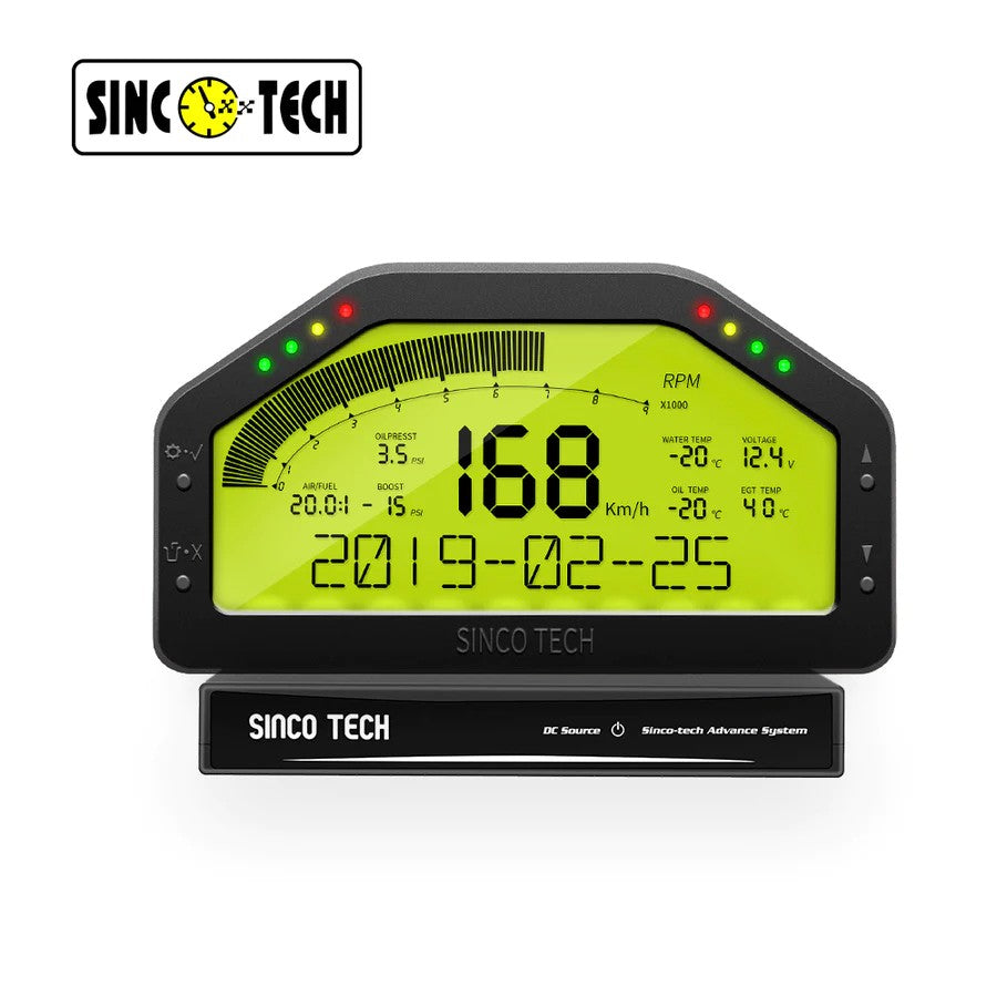 SincoTech DO908 Racing dashboard is one of our most popular product which features a 6.5 inch, green backlight, Chinese/English available, low consumption LCD screen and universal to all 12V vehicles( 1-8 engine cylinders), RPM reach to 9000 max. Four speed alarm LED lights and two button keys are designed on either side of display shell. It is waterproof so that also can be used on motorcycle engine.