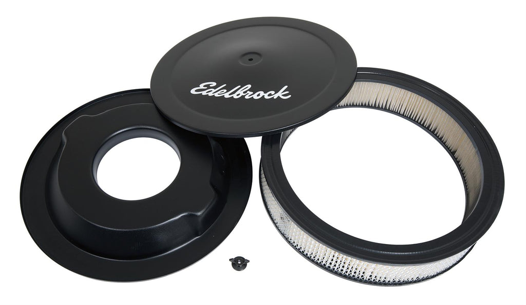 Edelbrock Pro-Flo Series air cleaners work with a variety of popular carburetors, including Performer Series, Thunder Series AVS, Holley, Thermo-Quad, Quadra Jet and Carter AFB, just to name a few. Knock-outs in the air cleaner base for use with Edelbrock crank case ventilation adapters (sold separately) are provided, depending on application. Pro-Flos offer multiple styles to match yours—and sizes for a proper fit. When you're looking for an ideal solution to your hood clearance problems, consider Edelbrock Pro-Flo Series air cleaners.